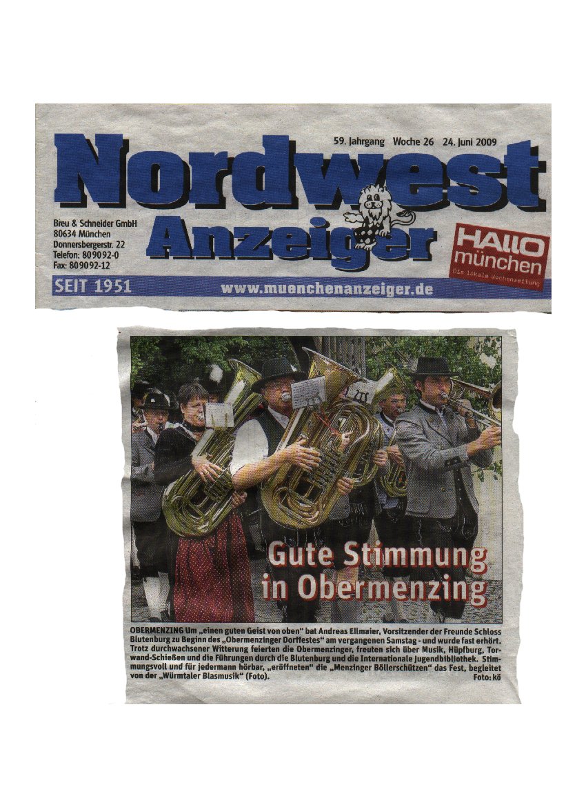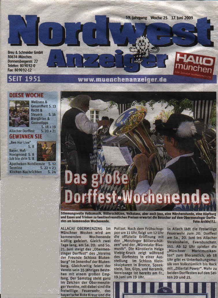Im Nordwestanzeiger vom 17.6.2009 war eine Vorankündigung, in der Ausgabe vom 24.6.2009 dann ein Bericht über das Fest abgedruckt.